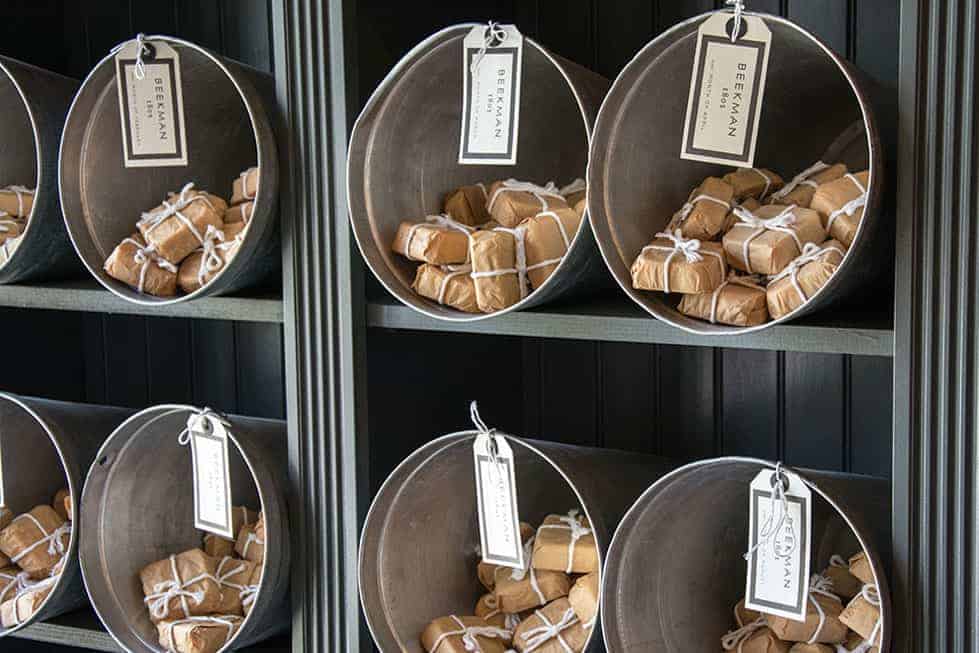 Beekman 1802 is a working organic farm. In addition to food, the owners make chemical-free soaps (seen below) from the Beekman goat’s milk as well as other eco-friendly products. “Our pasta sauces use heirloom tomatoes grown on small organic family farms,” says Ridge. “Twenty-five percent of the profits of the Mortgage Lifter sauces also go back to give other small farms a “lift.” Last year Beekman 1802 donated $18,000.