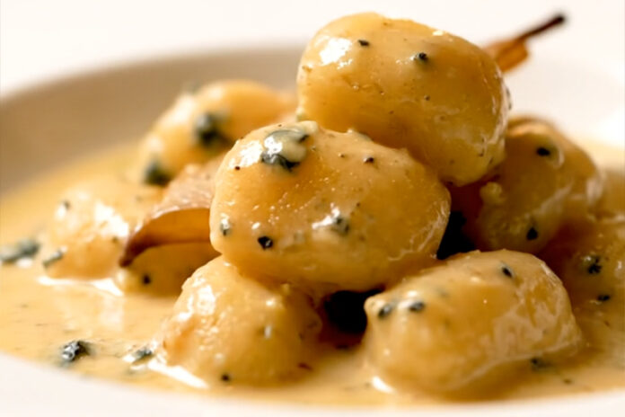 A bowl built on contrast, this recipe layers tender gnocchi with a tangy pear ferment and the salty creaminess of blue cheese. Candied jalapeños bring a smoky-sweet lift, so every forkful hits sweet, salty, tangy and warm heat—comfort food with couture polish.