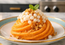 - Meanwhile, pull the muscle off each scallop and pay dry. Sprinkle each with salt and pepper then dredge the meat in flour, shaking off the excess. Heat oil in a large non-stick skillet over medium-high heat. Add scallops, cooking until golden brown and just opaque in the centre. Divide among plates as desired and serve with the potatoes. Top with the tarragon sauce.