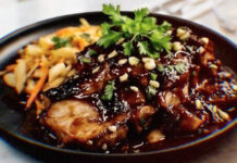 - Prepare the Tarragon White Wine Butter Sauce. Heat the oil in a large pan. Add the bay leaf, the red and yellow pepper slices, parsley and garlic. Sauté about 1 minute.